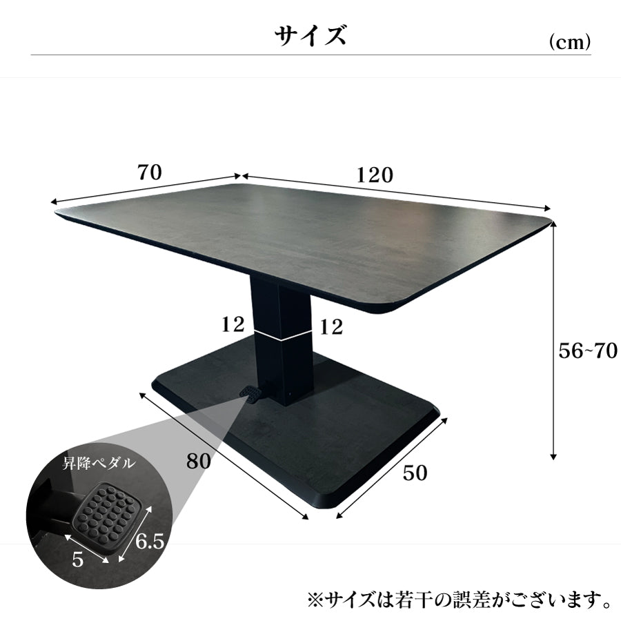 基本寸法/サイズ 幅120cm×奥行き70cm×高さ56~70cm